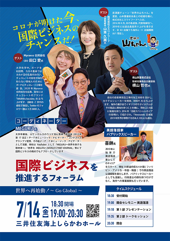 現在国際ビジネスで活躍されている3人の講師から海外展開へのワクワクを感じませんか。