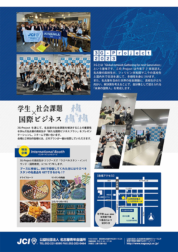 3G-Projectを通じて、名古屋の社会課題を解決することの重要性を学んだ名古屋の高校生が「新たな国際ビジネスプラン」をプレゼンテーションし、3チームで競います。